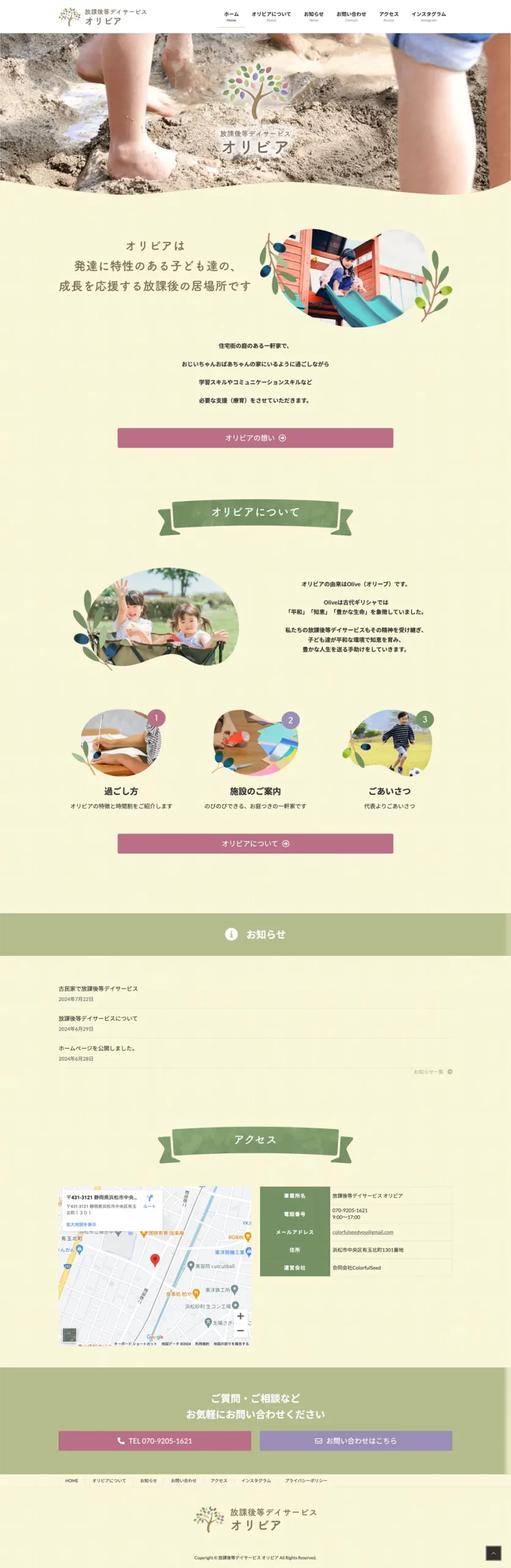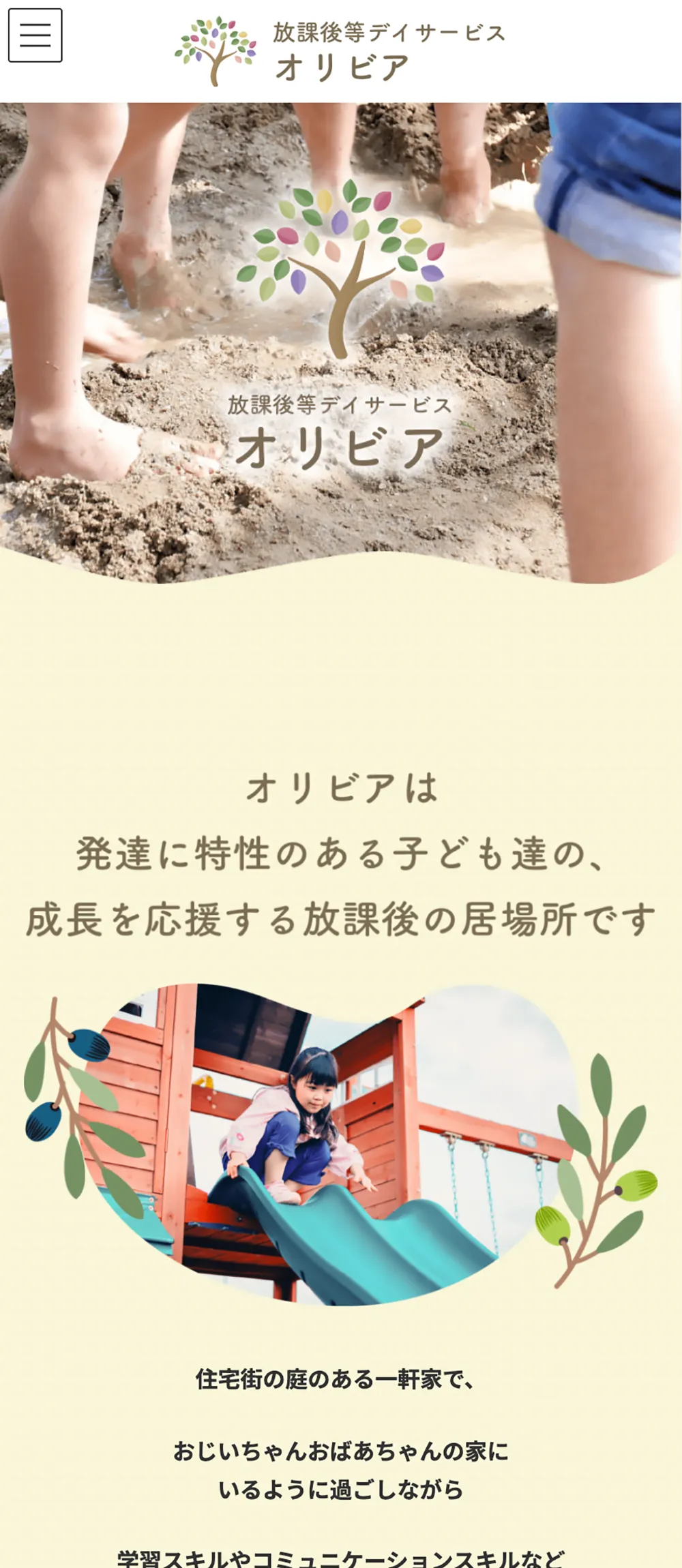 放課後等デイサービスの事業をされている、オリビア様のホームページを制作させていただきました。